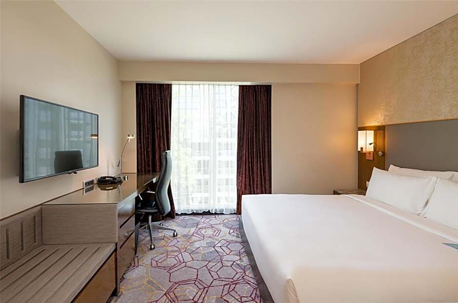 This spacious suite consists of a kitchenette, a seating area, 1 separate bedroom and 1 bathroom with a walk-in shower and a bath. The suite's kitchenette, which features a refrigerator and a microwave, is available for cooking and storing food. The air-conditioned suite provides a flat-screen TV with cable channels, soundproof walls, a mini-bar, a tea and coffee maker as well as city views. The unit offers 1 bed.